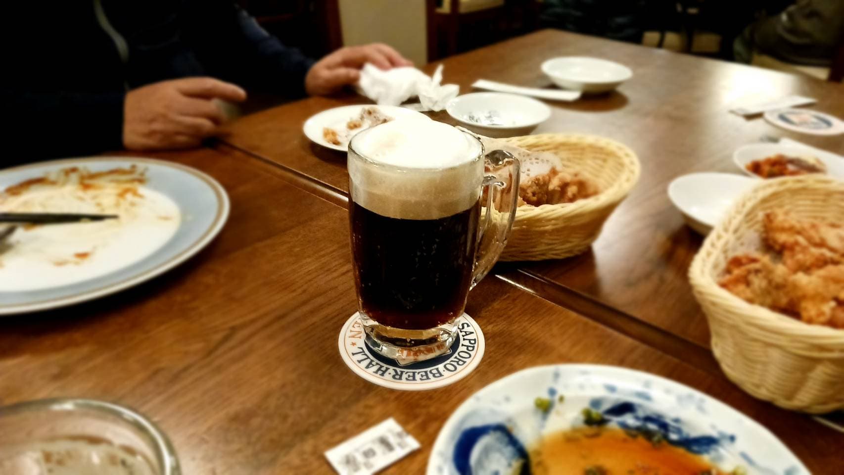 広々とした開放感あるドイツ風ビアホールでいただく生ビールと揚げたてアツアツ、サクサクの唐揚げ。