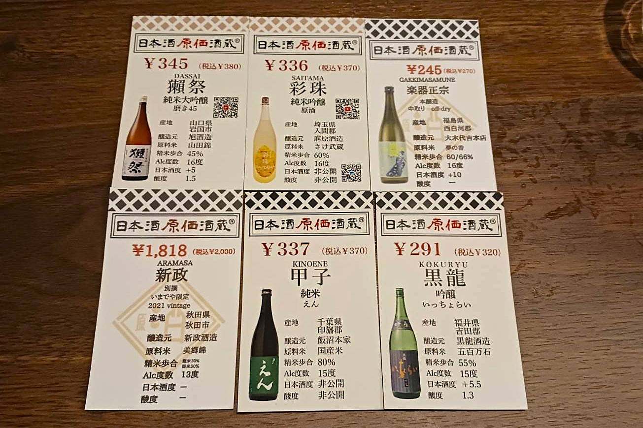 獺祭など全国の日本酒を原価(200円台〜)で飲める日本酒居酒屋。